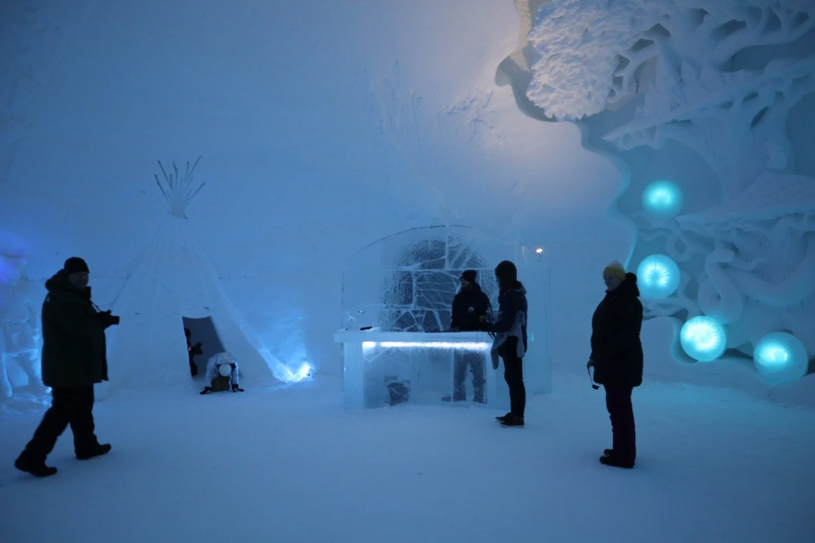 But heat we need heat .. I also confirmed when looking at our bed of ice. And I saw a wire with a switch next to it and I said to my husband reassuringly - oh they have some heated mattress setup I think. God I am silly… husband couldn’t stop laughing … the wire was actually for lights and yes we had signed up to sleeping on a block of ice, in a dome of ice with a hole into the night sky for ventilation. But we are zipped up in an arctic sleeping bag over reindeer hide (don’t even think about going to the toilet in the night !) and we did manage to get some sleep.